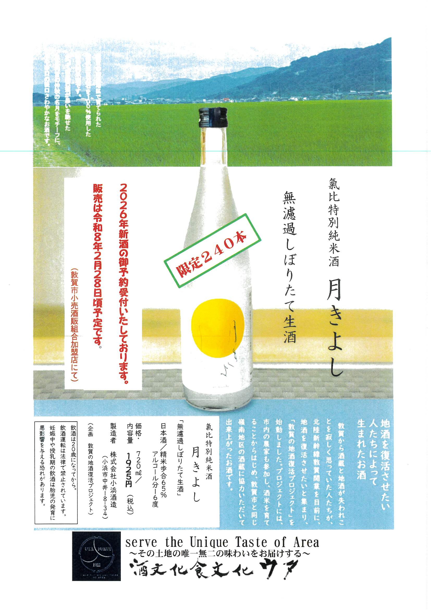 ※「月きよし 無濾過しぼりたて生酒」「萩乃露 今朝しぼり」は本店舗にて御受付させていただきます。